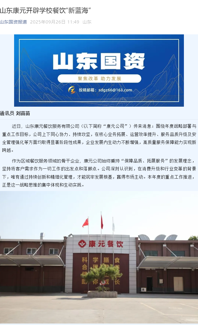 《山东国资》公众号 | 山东康元开辟学校餐饮“新蓝海”